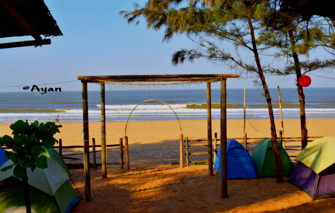 আমাদের প্ল্যান অনুযায়ী আজ রাতে ওই গুলোই আমাদের মাথা গোঁজার ঠাঁই । টেন্ট দেখে অনেকেরই চোখ কপালে উঠলো । কয়েকজনের মুখের অবস্থা তো দেখার মত । আমাদের দলের জেনি রাত কাটানোর এই সুবন্দোবস্থ দেখে কেমন একটা ভেবলে গিয়ে বিষম খেয়ে অস্থির । তবে আমি যারপরনাই খুশি হয়েছিলাম । খোলা আকাশের নিচে রাত কাটানো আমার বহুদিনের শখ এবং তার সাথে উপরি পাওনা আকাশ ভরা ফুলের কুঁড়ির মত ফুটে থাকা তারাদের মেলা, মিঠে মনমাতানো সি ব্রিজ আর সমুদ্রের তর্জন গর্জন । এইসবের আধঘণ্টার মধ্যে ব্রেকফাস্ট পর্ব সেরে আমরা যে যার মত তৈরি হয়ে বেরিয়ে এলাম । আমাদের সকলেরই পরনে টি শার্ট এবং শর্ট বা ট্রেকিং ট্রাউজার্স । কাঁধের জলের বোতল এবং অন্যান্য ট্রেকিং সরঞ্জামসহ ছোট ব্যাগ । অনেকের মাথায় টুপি বা ব্যান্ডানা । চোখে রোদচশমা । সকলেই মোটামুটি যুদ্ধংদেহী মনোভাব নিয়ে রেডি । সেনাপতিরা শিঙে ফুকলেই সবাই রে রে করে যুদ্ধক্ষেত্রে নেমে পড়বে । আমাদের ট্রেকিংয়ের রুট ম্যাপ টা একবার জানিয়ে রাখা যাক । আমরা গোকর্ণ বিচ থেকে সামনের দিকে হেঁটে গডস ওন বিচে পৌঁছাব । সেখান থেকে সামনের দিকে অগ্রসর হলে আমাদের রাস্তায় একে একে পড়বে প্যারাডাইস বিচ, হাফ মুন বিচ , ওম বীচ , কুডলে বিচ এবং সেখান থেকে আরও সামনে হেটে আমরা আবার আমাদের হোমস্টে তে ফিরে আসব । গোকর্ণ বিচ যেমনটা ভাবছো আদপে তেমন টাএকেবারেই নয় । গোকর্ণ তে এক বিচ থেকে অপর বিচে পৌঁছতে রীতিমত পাহাড় ডিঙাতে হয় । তুলনায় বালির উপরে হাঁটাহাঁটি কম । ঘড়িতে তখন সাড়ে নটা , আমরা একে একে লাইন করে আমাদের হোমস্টের গেটের সামনে এসে জড়ো হলাম । অমোঘ সবাইকে এক ফ্রেমে রেখে তার ফোনের ক্যামেরায় একটি ছবি তুলল । আমাকে তখন সমুদ্রে পেয়েছে, আমি হাঁ করে নিবিড় মনে সমুদ্রের ঢেউয়ের উথাল-পাথাল গিলছি । কতক্ষণ পরে খেয়াল নেই অমোঘ এর গলা পেলাম, কাম অন হারি আপ । পাশ ফিরে দেখি বাকিরা হাঁটতে হাঁটতে অনেক দূর এগিয়ে গেছে ,মায় নন্দিনীও,আমি একটু ভ্যাবাচ্যাকা খেয়ে হ্যাচর প্যাঁচর করতে করতে বালির উপর দিয়ে ছুটলাম ।