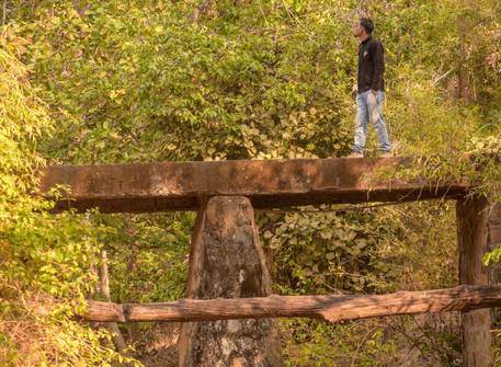 গাড়ীর আওয়াজের বালাই নেই, তাই জঙ্গলের সব আওয়াজ আজ অনেক বেশি স্পষ্ট। হঠাত দূরে একটা সাম্বার ডেকে উঠল, মনোজ স্থির হয়ে বাঁদিকটা তাকাল, আবার হাঁটতে থাকল। আবার সেই ডাক। অনেকটাই দূরে, কিন্তু স্পষ্ট শোনা যাচ্ছে। মনে হচ্ছে দূরে কোথাও বাঘের উপস্থিতি টের পেয়েছে। তবে আগের দিনের মতো যেদিকে ডাক সেদিকে না গিয়ে অন্যদিকে পা-বাড়াল। আমার স্বশুরমশাই হটাত বলে উঠলেন যেদিকে ডাক আসছে সেদিকে গেলে কেমন হয়? হয়ত আবার দেখা হতে পারে বাঘের সাথে। কিন্তু না, আজ আমরা পায়ে হেঁটে এসেছি, বাঘ গাড়ির সাথে পরিচিত, পায়ে হাঁটা মানুষের সাথে নয়, তাই No Risk।